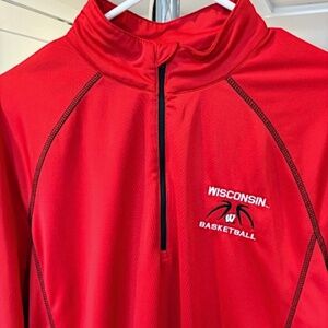 #Basketball, athletic, sporty, university of Wisconsin, Madison, badgers, sleeve pocket, casual, 1/4 zip