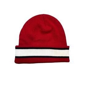 Red beanie with White and Black Stripe