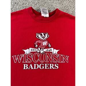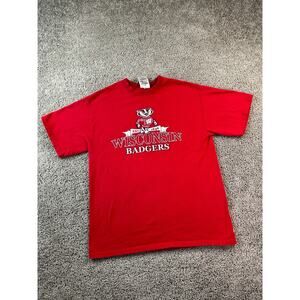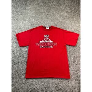 Wisconsin Badgers Shirt Mens Medium Red White Short Sleeve Casual Adidas FLAW