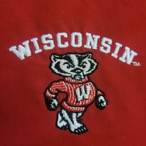 Wisconsin Badgers Windbreaker Pullover Jacket 2XL White Bear Red Embroidered Logo