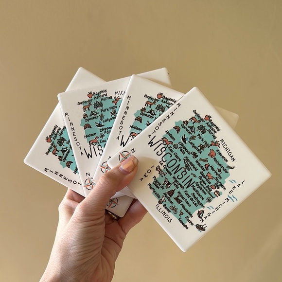 Wisconsin Map Ceramic Coasters