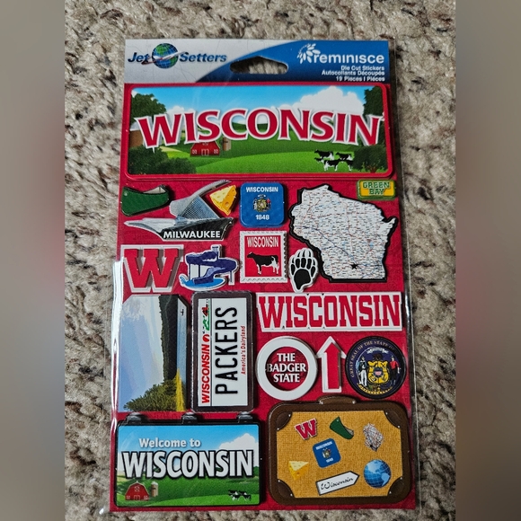 Explore your creativity with the Wisconsin Sticker Set. Featuring vibrant red and white designs, these stickers are perfect for personalizing your crafts and projects.