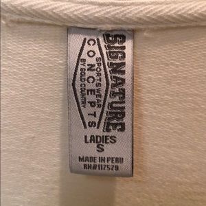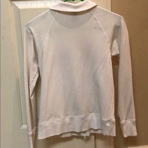 White, light zip up jacket. Go Badgers!