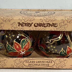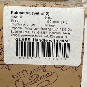 Wise Elk Glass Christmas Ornaments Poinsettia Set Of 2 Bulbs Clear Painted