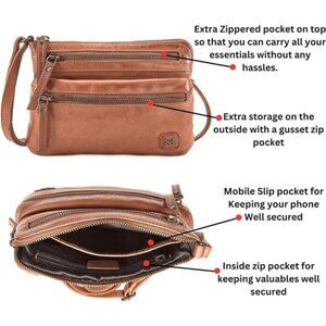 We are focusing on Womens crossbody bags in practical use with elegant design, we design our products with multiple zipper pockets, side pouches and shoulder strap for practical use, deisgn creative patwork for fashion. *★Handmade in INDIA by skilled craftsman, using top grain COW leather, soft smooth polyester interior, wonderful touching, and made with attention to details. This is a small Sling bag, which can be used for daily commute, when travelling by flight, visit to the park or a night out in the club with friends. It will fit the basic essentials with ease, like a small minimalist wallet, some tissues, lipstick, a small bottle of perfume, passport, compact powder, shades (Glasses), Key-ring and etc.