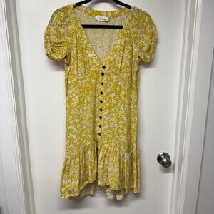 Wish Golden Bloom Yellow White Ditsy Daisy Floral Dress Womens Size Small