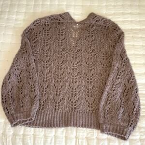 Wish List Chunky Knit Pointelle Cardigan Sweater Women's S/M | Lavender | EUC