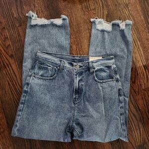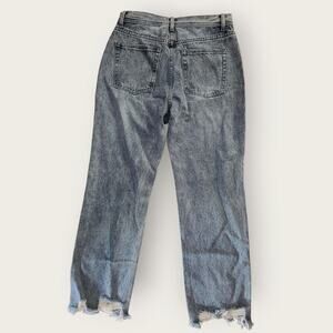 Wish List Jeans Women's Sz L Blue Denim Factory Distressed Straight High-Rise