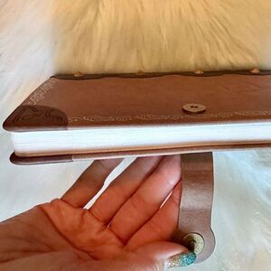 Jot down all your fondest hopes & wishes in this hardbound simulated leather journal with unlined pages featuring a Star graphic in the lower corner of every spread. Golden filigree, embossed rose, faceted studs & starry endpapers will help your dreams come alive. Magnetic closure tab seals your secrets away from prying eyes.