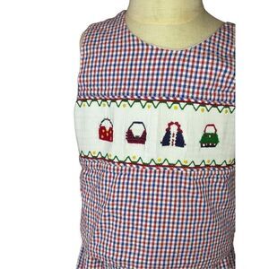 Wish Upon A Star Red Seersucker Plaid Smocked Purses 2-Piece Outfit- Size 5