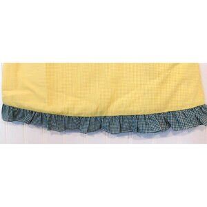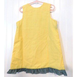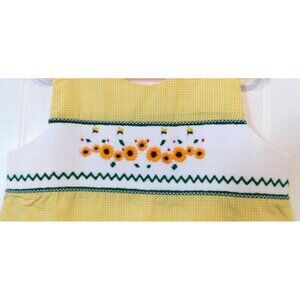 WISH UPON A STAR- Sz 4 Yellow and white gingham checked sleeveless dress with blue and white gingham checked ruffle. Smocked area with embroidered sunflowers. 65% polyester, 35% cotton. Shoulder buttons.
