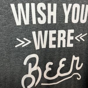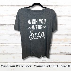"Wish You Were Beer" funny women's short sleeve t-shirt size Medium. Dark gray with white lettering.