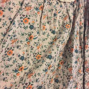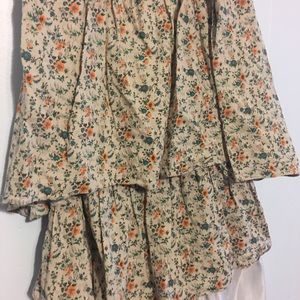 Wish brand dress. Floral print. Silver colored ruffle at bottom. Crochet style pattern at neckline. Good condition except for a few loose strings. 55% cotton and 45% polyester. Length is appx 34 inches. Armpit to armpit is appx 15 inches.