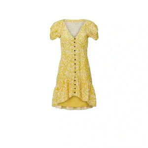Wish yellow Dress golden bloom high-low mini V-neck short sleeve size plus XXL