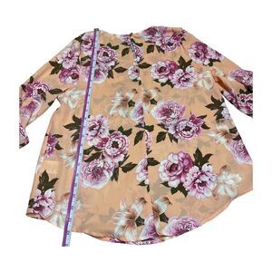 Wishful Park Blouse Pink Floral Long Roll Tab Sleeves Women’s Size Small