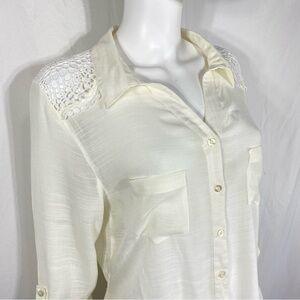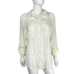Wishful Park Crochet Lace Sheer Ivory Long Sleeve Blouse