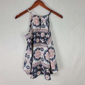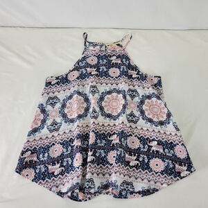 Wishful Park Shirt Women Small Spaghetti Strap Top Geometric Elephant Keyhole