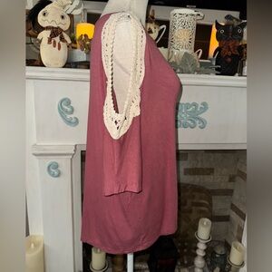Wishful Park crocheted lace cold shoulder top EUC size L