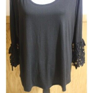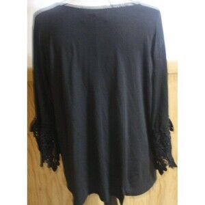 Wishful Pullover Blouse Round Neck 3/4 Crochet Sleeve Black Size Plus Sz 2X