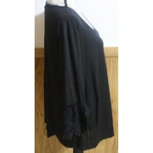 Pretty women's black pullover knit top, size plus 2X. 3/4 sleeves with crochet hem. Round neck. Polyester blend machine washable material.