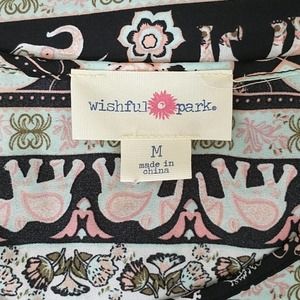Wishful parks Long Sleeve Black Pink Elephant Floral print Tunic top. Sz M