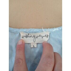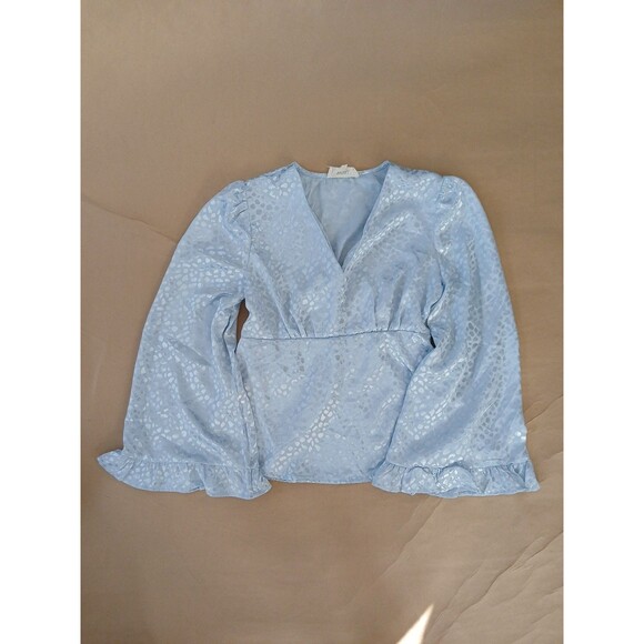Wishing Waves Blouse Top Shirt Womens L Ice Blue Bell Sleeve Ruffles