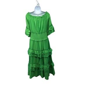 Wishing Waves Women's Dress Large Kelly Green Smocked tiered Ruffle Boho Resort