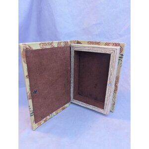 This decorative storage box combines festive charm with functionality. Designed to mimic a book, it offers a unique way to store small items.