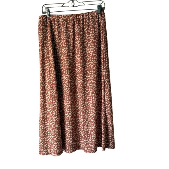 Wishlist Apparel Floral Midi Skirt Rust Clay White Flowers Size Large Cottagecore