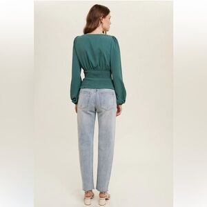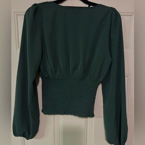 Elevate your wardrobe with the Wishlist Apparel Smocked Chiffon Top. Designed with a flattering V-neck and trendy balloon sleeves, this green blouse exudes a sense of effortless elegance. The solid color and smocked detailing offer a contemporary twist that can seamlessly transition from a casual office setting to an evening cocktail party.