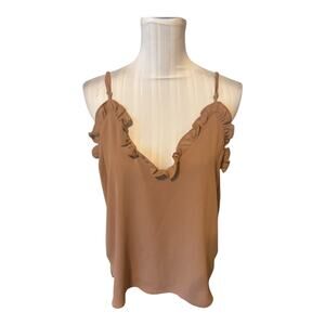 This Wishlist Apparel cami blouse is the perfect addition to your wardrobe! The tan color is versatile and can be dressed up or down. The size is L. This top is in excellent condition and ready for a new home. Get ready to turn heads and feel confident in this stylish cami blouse! Don't miss out, grab it now!