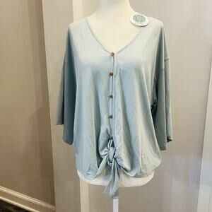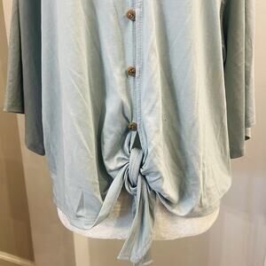 Wishlist Bamboo Top Women’s M/L 3/4Sleeves Button Tie Blouse Stretch (A0125)