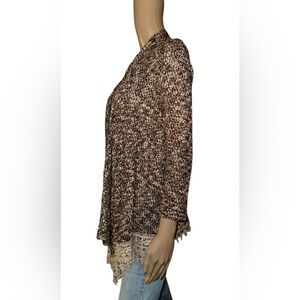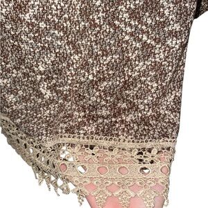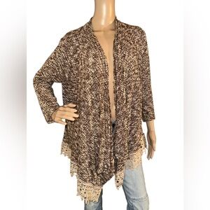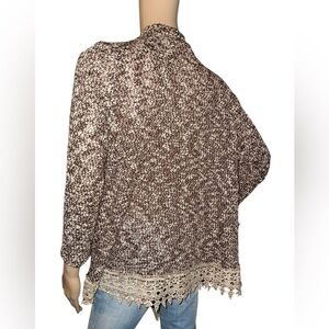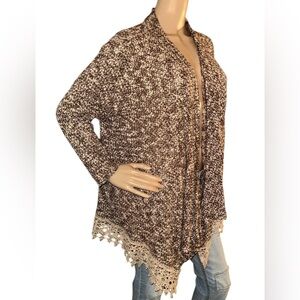 Wishlist Brown Open Front Cardigan Lace Trim M/L