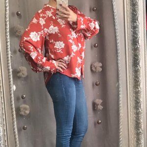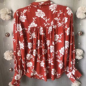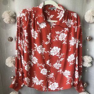 Wishlist Button Down Floral Top. Split cuff with button closure. Very pretty orange color with cream floral pattern. 100% Rayon