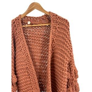 Wishlist Chunky Knit Cardigan Rust Orange Bubble Sleeve Sweater Boho M/L Cozy