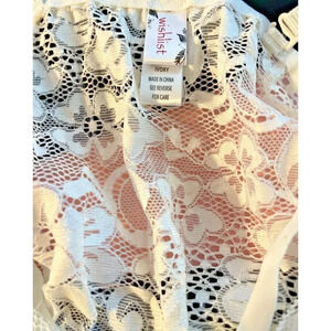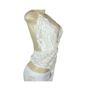 Wishlist L Eggshell Sheer Lace Mesh Plunge Neckline Adjustable Halter Bodysuit