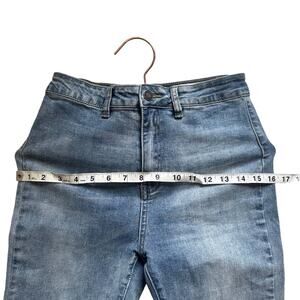 Wishlist Medium Wash High Waisted Flare Leg Jean Size Medium frayed hem