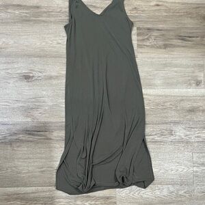 Chic olive green maxi dress. Sleeveless with a flattering fit. Ideal for casual or dressy occasions.