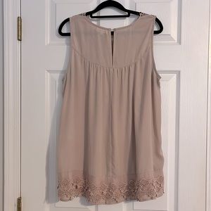 Wishlist Size L Blouse; Blush colored silky, sleeveless, with detailed neckline and hem!