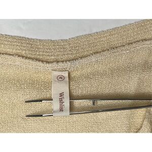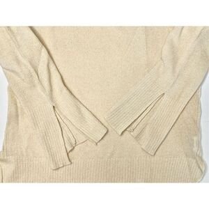 Wishlist Vneck High Low Hem Split Sleeve & Hem Yellow Sweater sz Small. Very stylish sweater with split sleeve cuffs , high low hemline and split hem. Item in excellent gently used condition. 50/50 Acrylic Nylon. Hand wash only. No known rips, tears, holes, stains or defects.