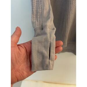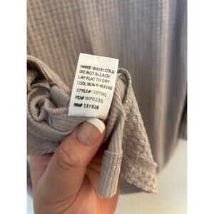 Wishlist knit, light sweater top in a lavender-gray color. Lightweight but cozy. Has thumbholes.