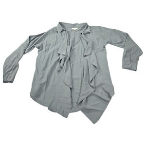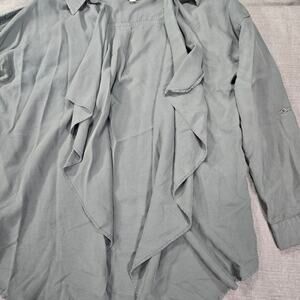 Wishlist Women LG Open Drape Front Long Sleeve Roll Tab Blouse Boho Artsy Flowy