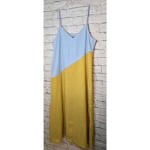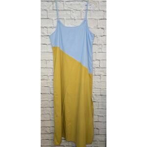Wishlist blue yellow Colorblock boho midi cotton slip summer dress size Large.