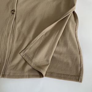 Button down oversize mid length dress features two pockets, side slits and oversized 3/4 length sleeves. Beautiful ribbed material with lots of stretch.