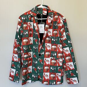Wisholic Santa Claus Print One Button Blazer Jacket Mens Sz XL Red Green NEW