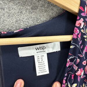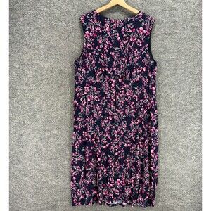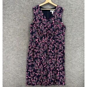 Wisp Dress Women 18W Plus Blue Floral Shift Midi V-Neck Zipper Sleeveless Lined