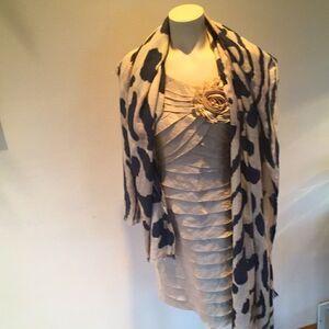 Wisp size 8 Petite tan tiered ruffles very stretchy beautiful soft dress.