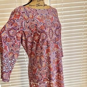 Wisp Knit Dress Size 12 Pink Paisley Sheath Boat Neck Long Sleeve Pullover