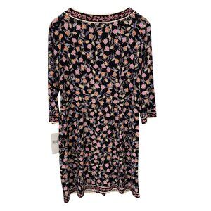 Wisp Marnie Knit Floral Shift Dress Size 6 3/4 Sleeve Black Multi Fairygoth NEW