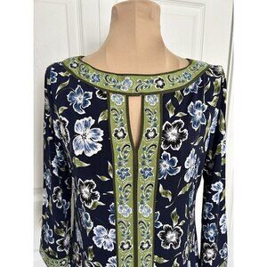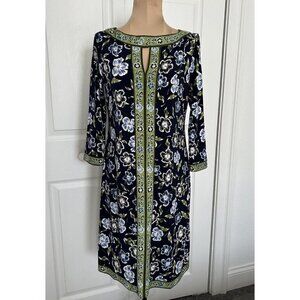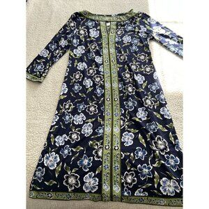 Wisp Women’s Dress Blue/Green Floral Print 3/4Sleeve Round Neck Mini Size 0